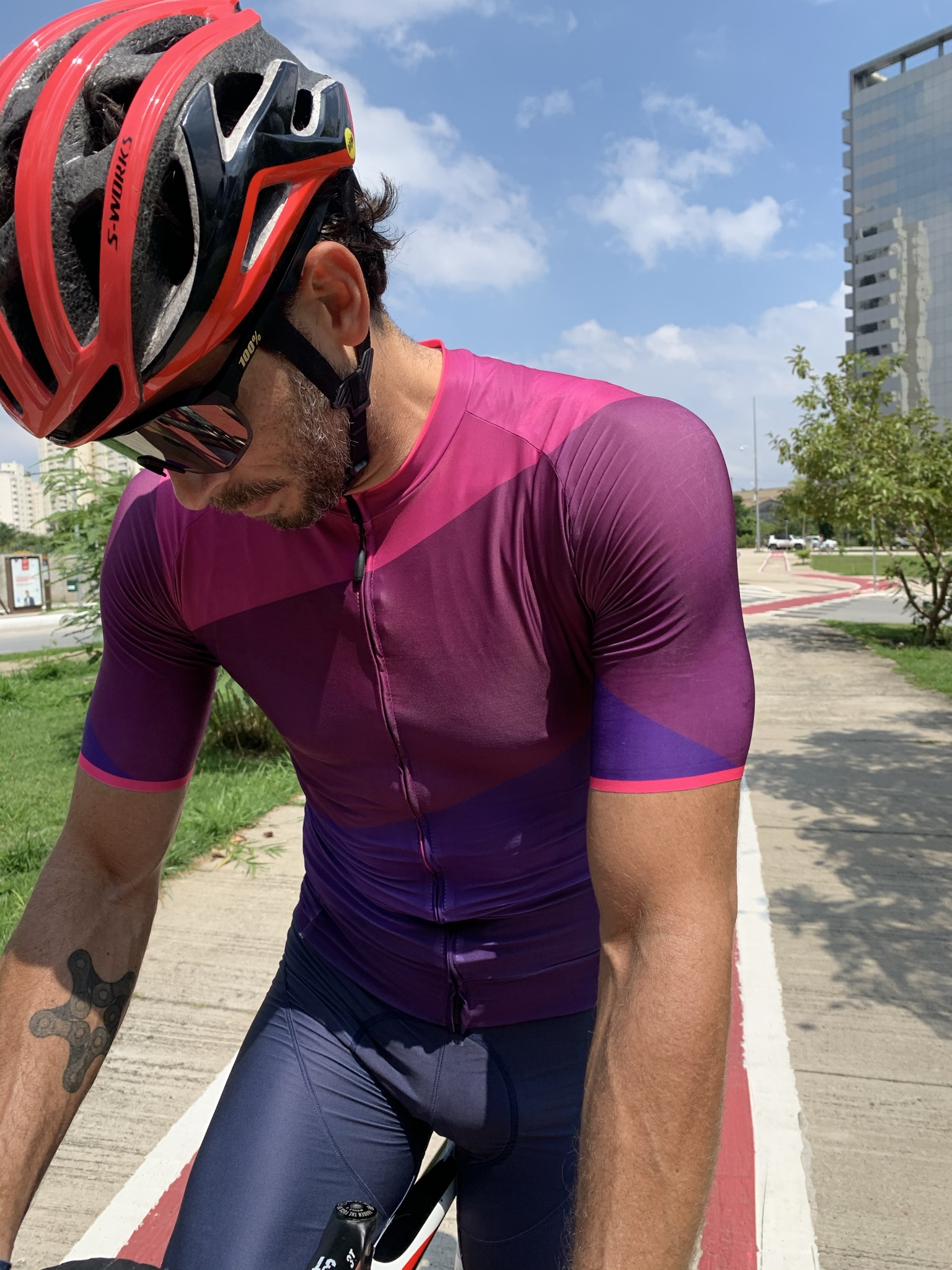 > Tecido tecnológico, proteção UV50, aplicação de pontos refletivos, 3 bolsos grandes nas costas e corte a laser.